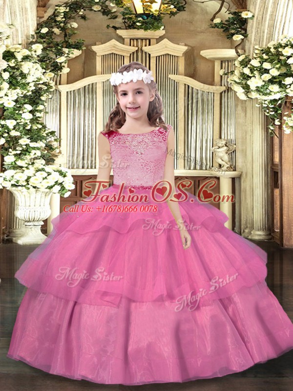 Home >  Special Occasion Dresses >  Lovely Little Girl Pageant Dresses > Sleeveless Organza Floor Length Zipper Little Girl Pageant Gowns in Pink with Beading and Ruffled Layers