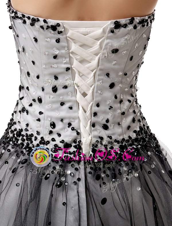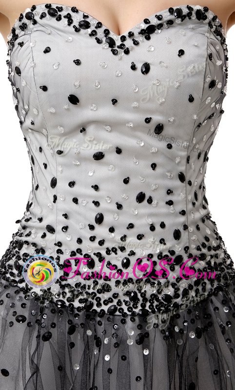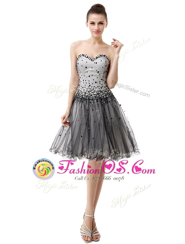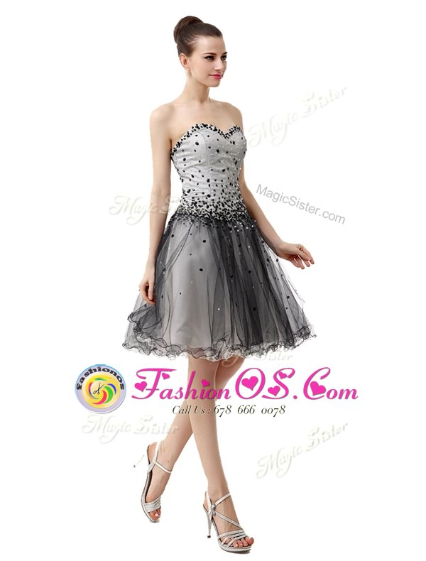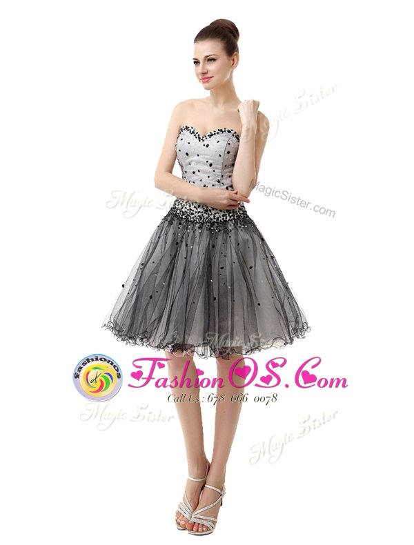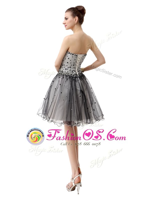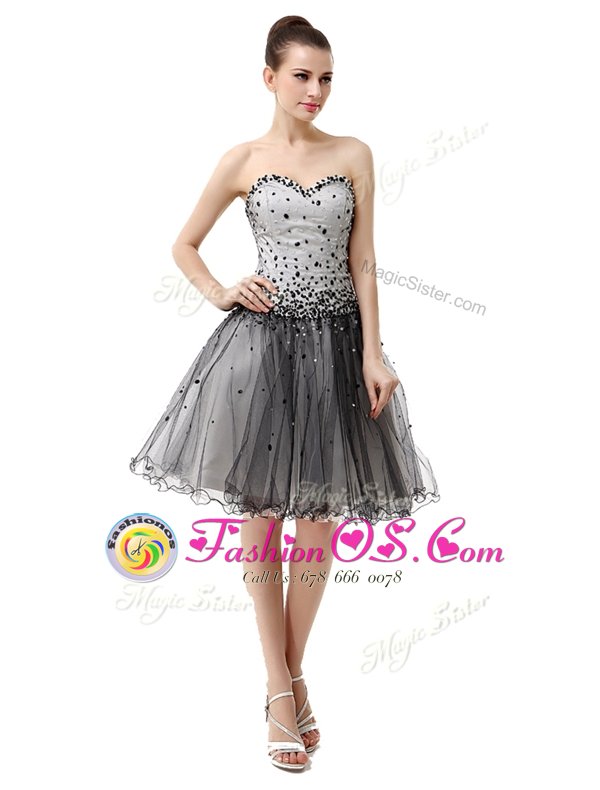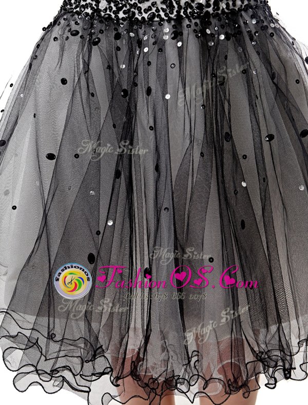 Sleeveless Organza Knee Length Lace Up Cocktail Dresses in Black for with Beading and Ruffled Layers and Ruching
