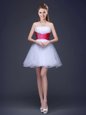 Sleeveless Organza Mini Length Lace Up Dama Dress in White for with Beading and Ruching and Belt