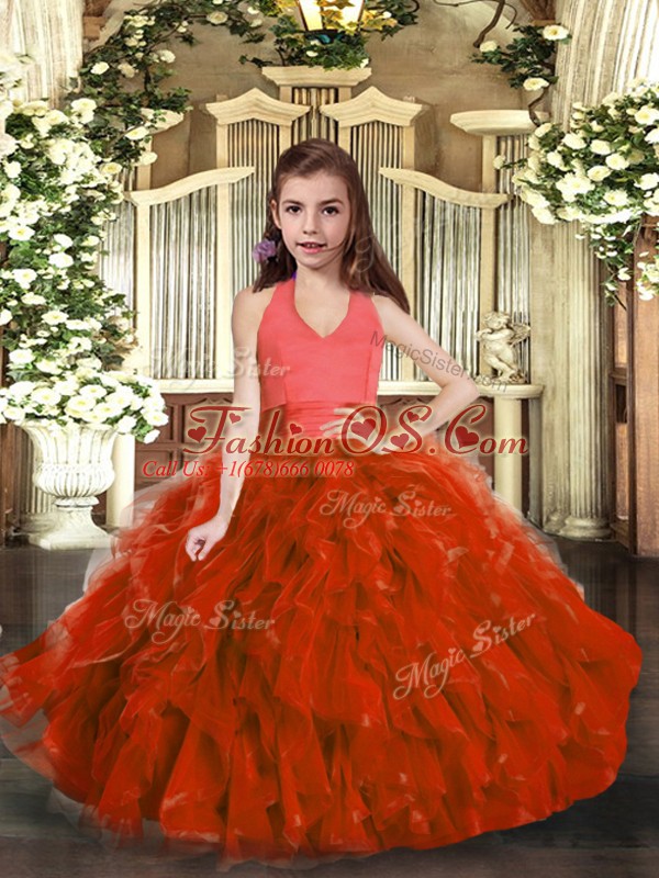 Sleeveless Ruffles Lace Up Little Girl Pageant Dress