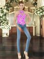 Sleeveless Satin and Tulle Floor Length Lace Up Sweet 16 Dresses in Fuchsia with Embroidery