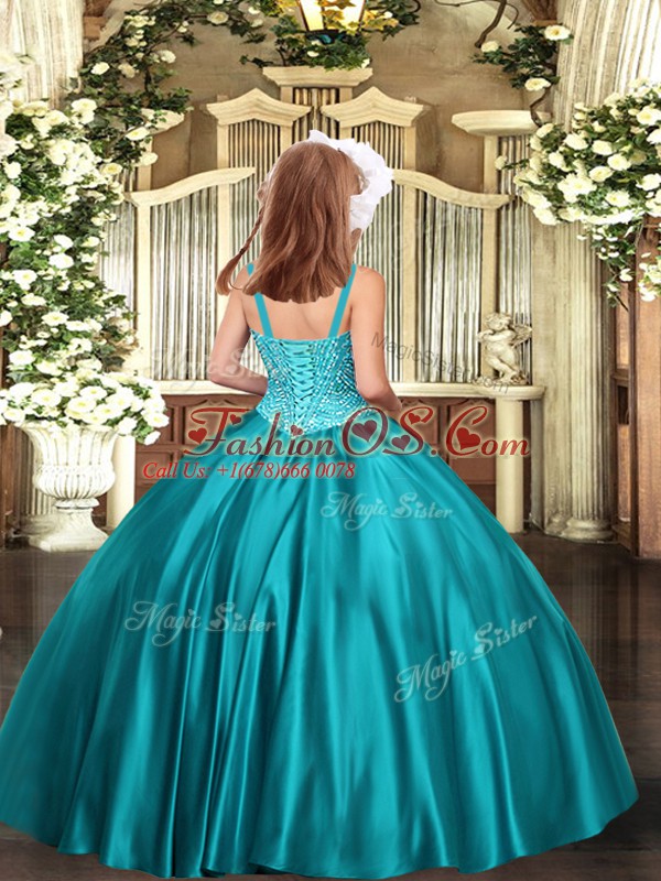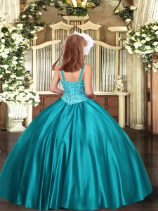 Sleeveless Satin Floor Length Lace Up Pageant Dress for Girls in Purple with Beading