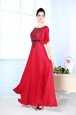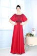 Sleeveless Satin Floor Length Zipper Prom Dress in Red for with Beading