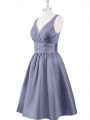 Sleeveless Satin Knee Length Zipper Prom Evening Gown in Grey with Ruching