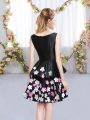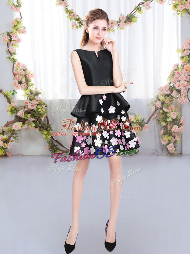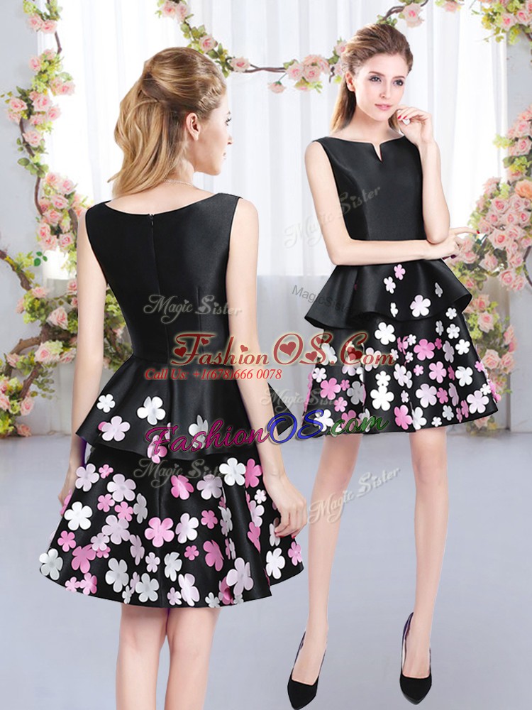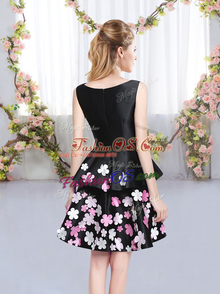 Sleeveless Satin Mini Length Zipper Bridesmaid Gown in Black with Pattern