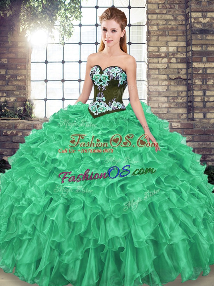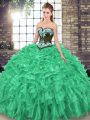 Sleeveless Sweep Train Embroidery and Ruffles Lace Up Quinceanera Gowns