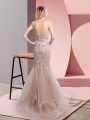 Sleeveless Sweep Train Zipper Beading and Ruffles