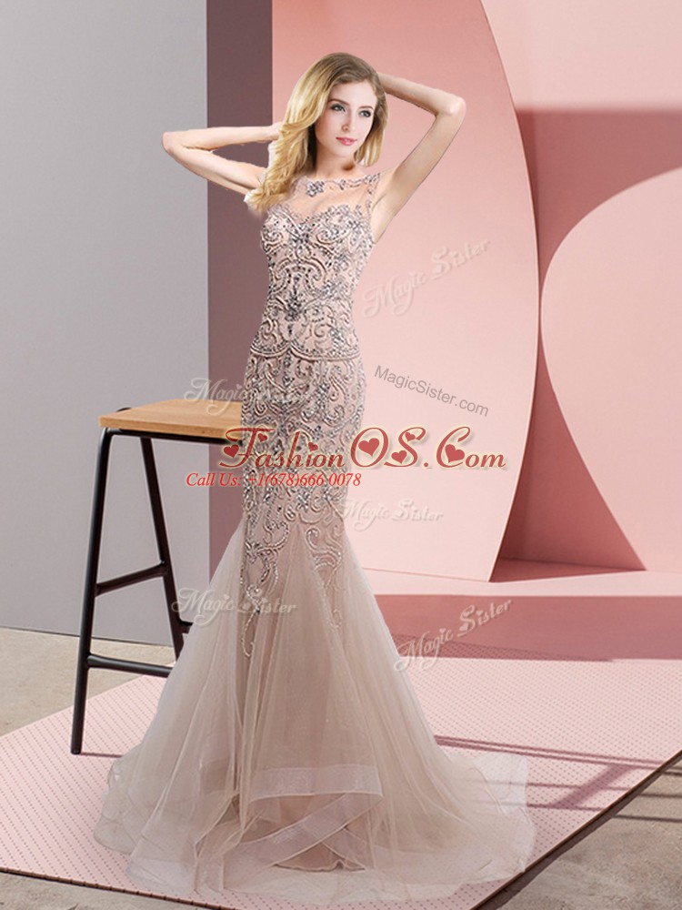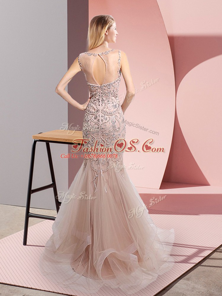 Home >  Prom Dresses >  Fashionable Prom Dresses > Sleeveless Sweep Train Zipper Beading and Ruffles
