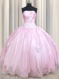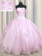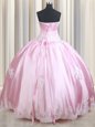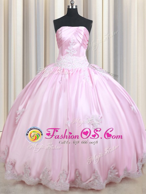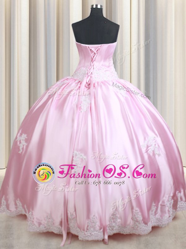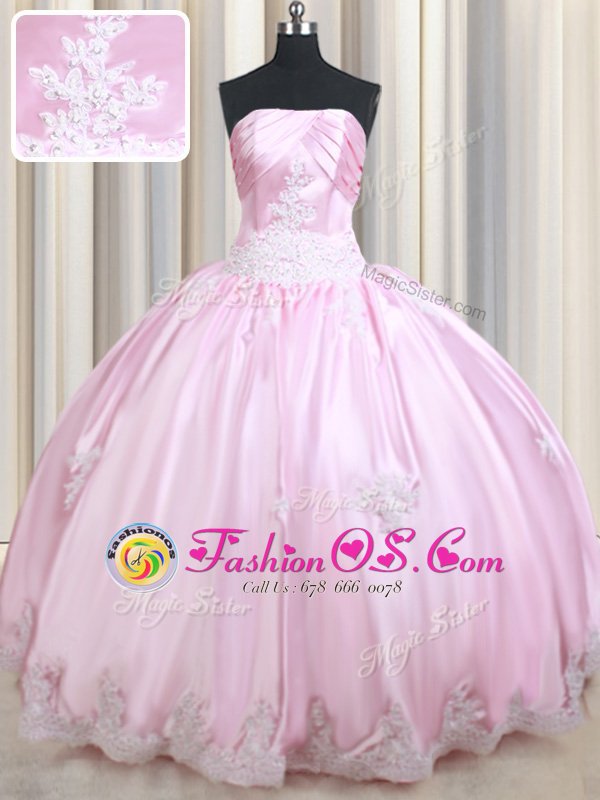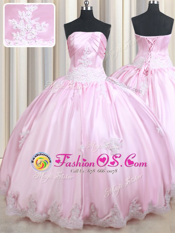 Sleeveless Taffeta Floor Length Lace Up 15th Birthday Dress in Baby Pink for with Appliques