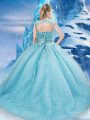 Sleeveless Tulle Brush Train Lace Up Sweet 16 Quinceanera Dress in Aqua Blue with Beading