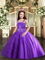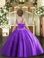 Sleeveless Tulle Floor Length Lace Up Child Pageant Dress in Purple with Beading and Ruffled Layers