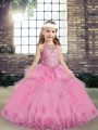 Sleeveless Tulle Floor Length Lace Up Kids Formal Wear in Lilac with Beading and Appliques