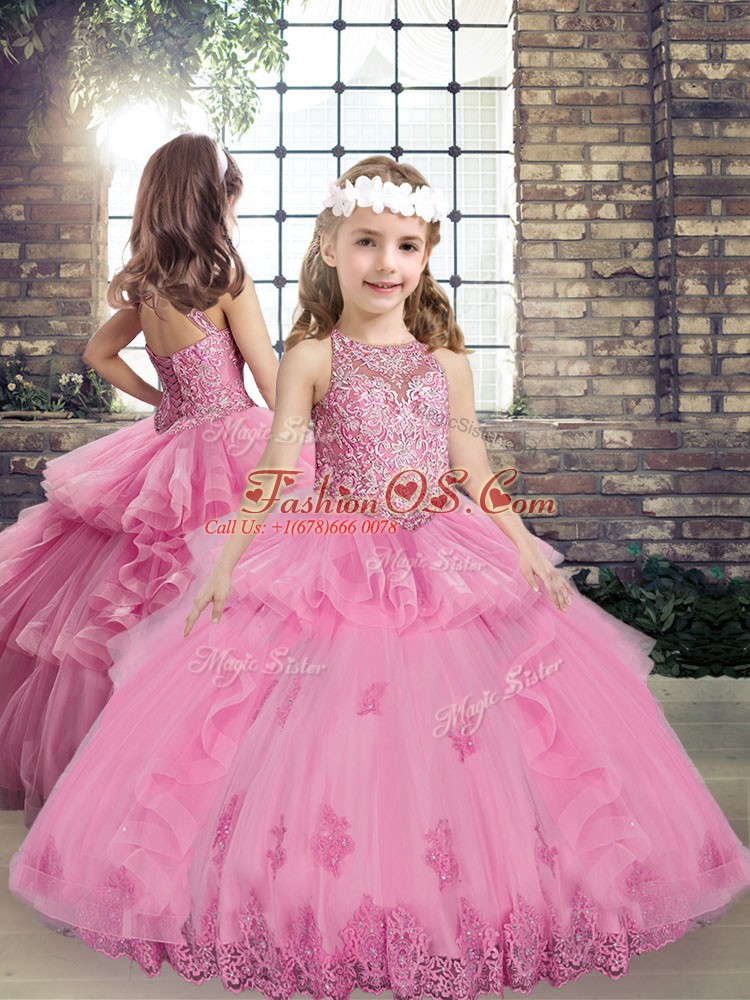 Home >  Special Occasion Dresses >  2019 Little Girl Pageant Dresses > Sleeveless Tulle Floor Length Lace Up Kids Formal Wear in Lilac with Beading and Appliques