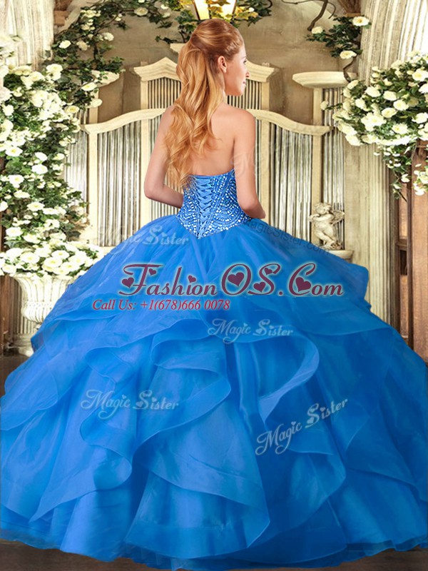 Sleeveless Tulle Floor Length Lace Up Quinceanera Gown in Hot Pink with Beading and Ruffles