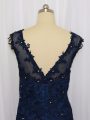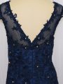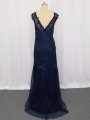 Sleeveless Tulle Floor Length Zipper Mother Of The Bride Dress in Navy Blue with Lace and Appliques