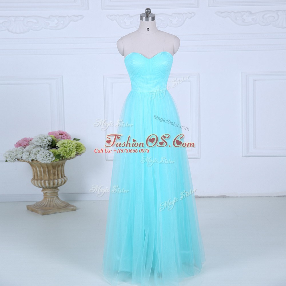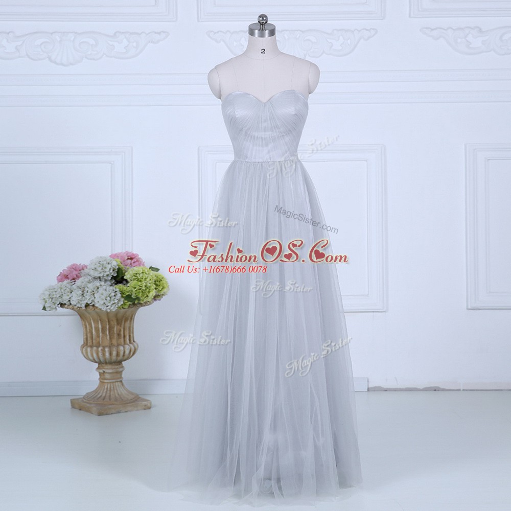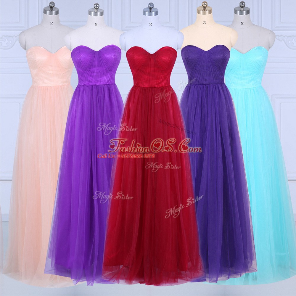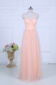 Sleeveless Tulle Floor Length Zipper Quinceanera Dama Dress in Peach with Ruching