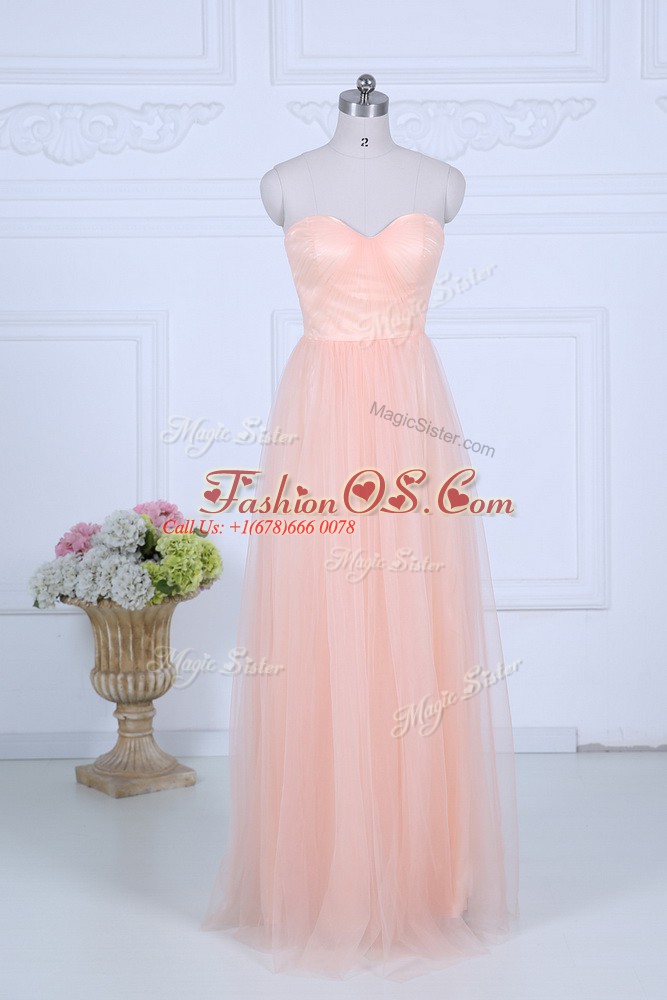 Home >  Special Occasion Dresses >  Dama Dresses 2019 > Sleeveless Tulle Floor Length Zipper Quinceanera Dama Dress in Peach with Ruching