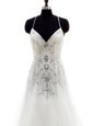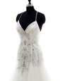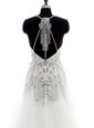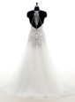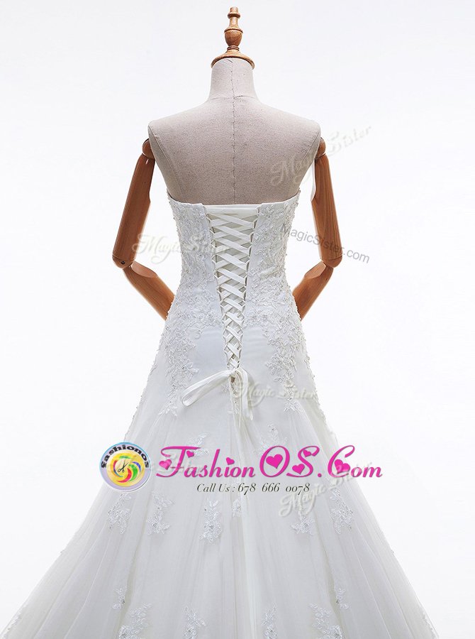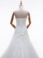 Sleeveless With Train Beading and Lace and Appliques Lace Up Wedding Dress with White Court Train
