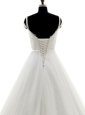 Sleeveless With Train Lace and Appliques Lace Up Wedding Dress with White Brush Train