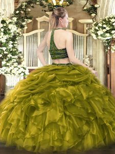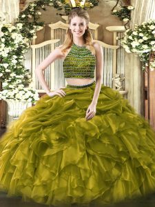 Sleeveless Zipper Floor Length Beading and Ruffles 15th Birthday Dress