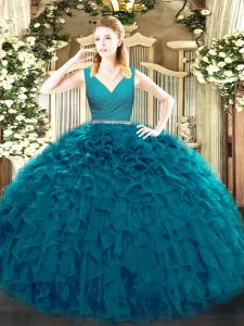 Sleeveless Zipper Floor Length Beading and Ruffles Quinceanera Gowns