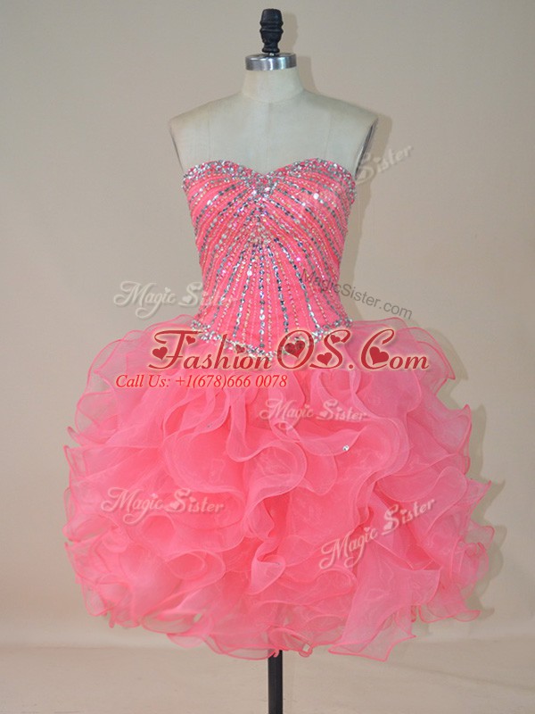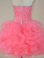 Sleeveless Zipper Mini Length Beading and Ruffles Cocktail Dresses
