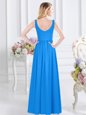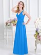 Smart Baby Blue Chiffon Zipper V-neck Sleeveless Floor Length Bridesmaid Gown Ruching