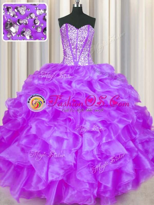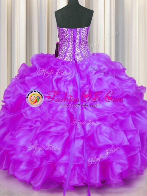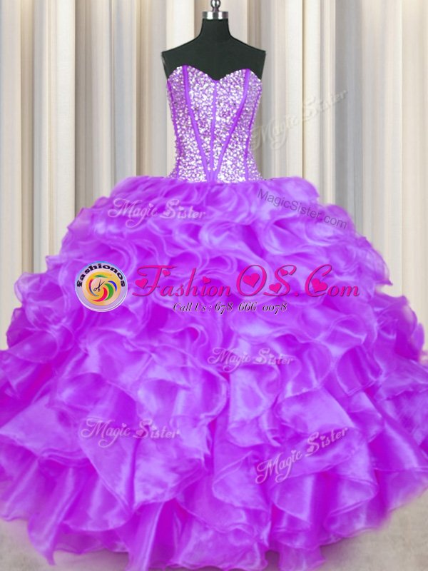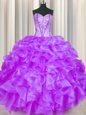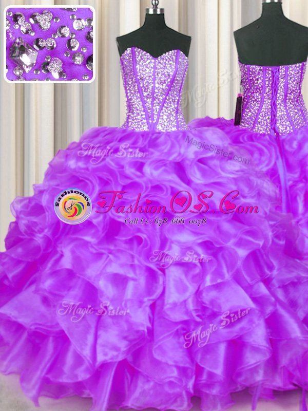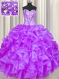 Smart Eggplant Purple Sweetheart Lace Up Beading and Ruffles Vestidos de Quinceanera Sleeveless