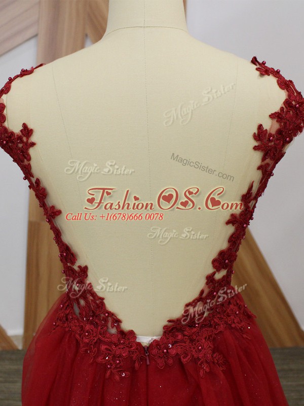 Home >  Special Occasion Dresses >  Homecoming Dresses > Smart Floor Length Red Homecoming Dresses V-neck Sleeveless Criss Cross