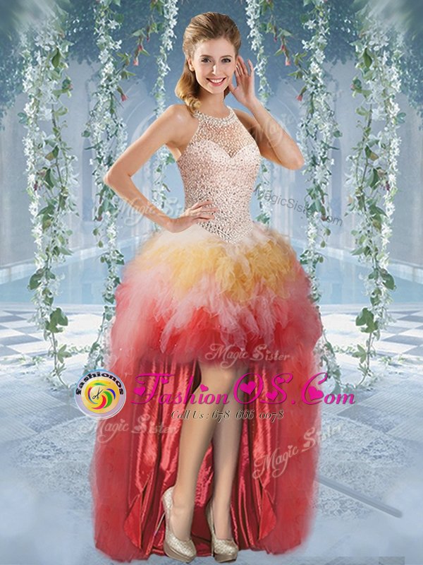Home >  Quinceanera Dresses >  Cheap Quinceanera Dresses > Smart Four Piece Multi-color Ball Gowns Tulle Halter Top Sleeveless Beading and Ruffles Floor Length Lace Up 15 Quinceanera Dress