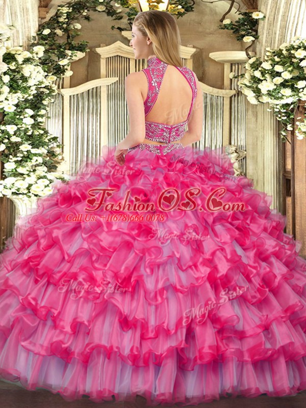 Smart High-neck Sleeveless Backless Quince Ball Gowns Purple Tulle