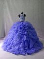 Smart Lavender Zipper Scoop Ruffles and Sequins Quince Ball Gowns Organza Sleeveless Brush Train