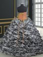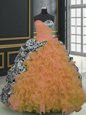 Smart Orange Organza and Printed Lace Up Sweetheart Sleeveless With Train Sweet 16 Dress Brush Train Beading and Ruffles and Pattern