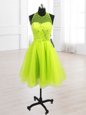 Home >  Prom Dresses >  Cheap Prom Dresses > Smart Organza High-neck Sleeveless Lace Up Sequins in Yellow Green