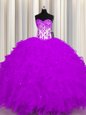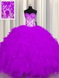 Home >  Quinceanera Dresses >  Luxurious Quinceanera Dresses > Smart Purple Ball Gowns Organza Sweetheart Sleeveless Appliques and Ruffles Floor Length Lace Up Quinceanera Dresses