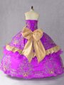 Smart Purple Lace Up Sweetheart Embroidery and Bowknot 15th Birthday Dress Satin and Organza Sleeveless
