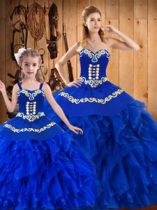 Smart Royal Blue Sleeveless Embroidery and Ruffles Floor Length Sweet 16 Dresses