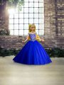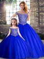Smart Royal Blue Tulle Lace Up Ball Gown Prom Dress Sleeveless Brush Train Beading