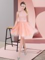 Smart Sleeveless Tulle Knee Length Zipper Prom Dresses in Peach with Beading