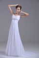 Smart White Lace Up Straps Beading Wedding Gown Chiffon Sleeveless Brush Train