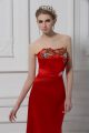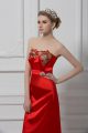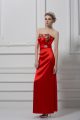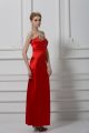 Sophisticated Ankle Length Red Prom Evening Gown Satin Sleeveless Beading and Appliques
