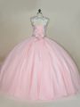 Sophisticated Ball Gowns Quinceanera Dresses Baby Pink Scoop Tulle Sleeveless Lace Up