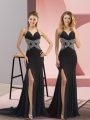 Sophisticated Black Backless Homecoming Dress Beading Sleeveless Sweep Train