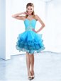Sophisticated Blue Ball Gowns Beading and Ruffled Layers Prom Dress Lace Up Organza Sleeveless Mini Length