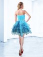 Home >  Prom Dresses >  Best Prom Dresses > Sophisticated Blue Ball Gowns Beading and Ruffled Layers Prom Dress Lace Up Organza Sleeveless Mini Length