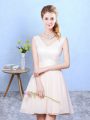 Sophisticated Champagne Lace Up V-neck Ruching Court Dresses for Sweet 16 Chiffon Sleeveless