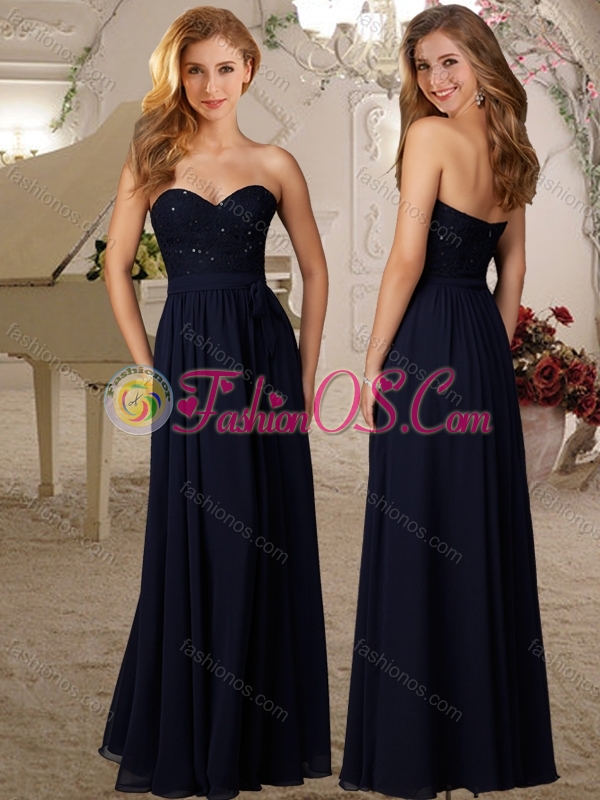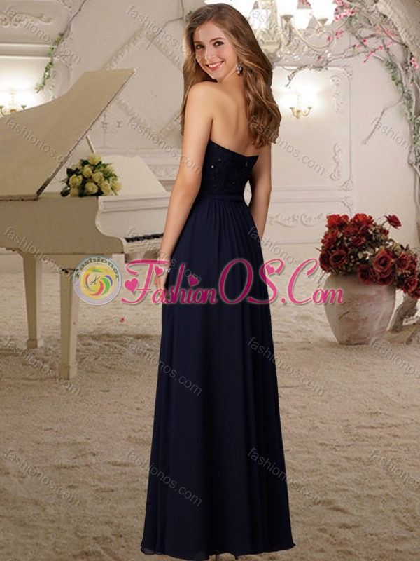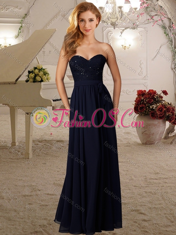 Sophisticated Empire Navy Blue Cheap Dama Dress with Beading