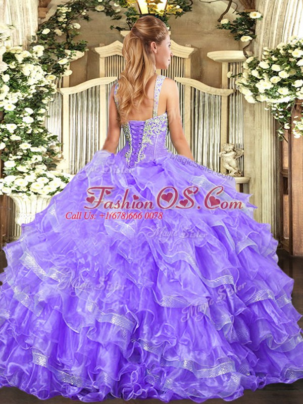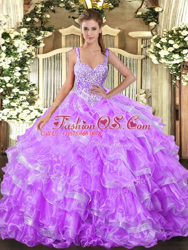 Sophisticated Floor Length Ball Gowns Sleeveless Lilac Quince Ball Gowns Lace Up