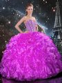 Sophisticated Fuchsia Lace Up Sweetheart Beading and Ruffles Sweet 16 Quinceanera Dress Organza Sleeveless