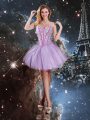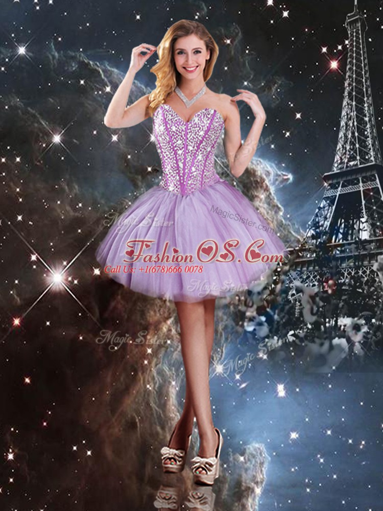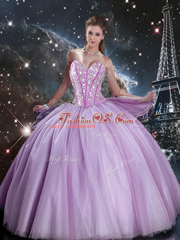 Sophisticated Lavender Ball Gowns Beading Quinceanera Dress Lace Up Tulle Sleeveless Floor Length